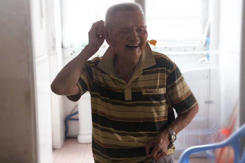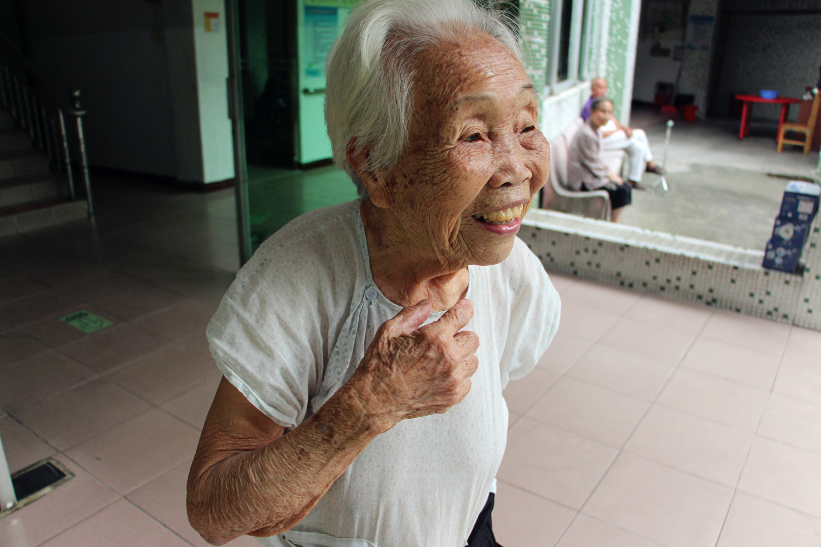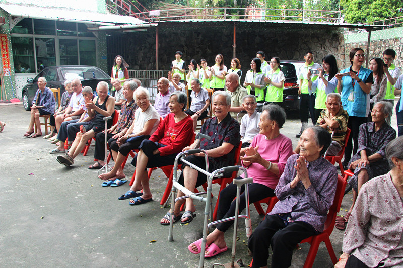 “我九十六歲了,我們以前很窮,很辛苦的,每天挑泥做苦力,就為了賺一口飯吃。你們讀大學(xué),做一份好工作,真的很叻(棒)。有空就帶禮物來送給我們,唱歌跳舞給我們這些老人看,你們真好,謝謝你們!”