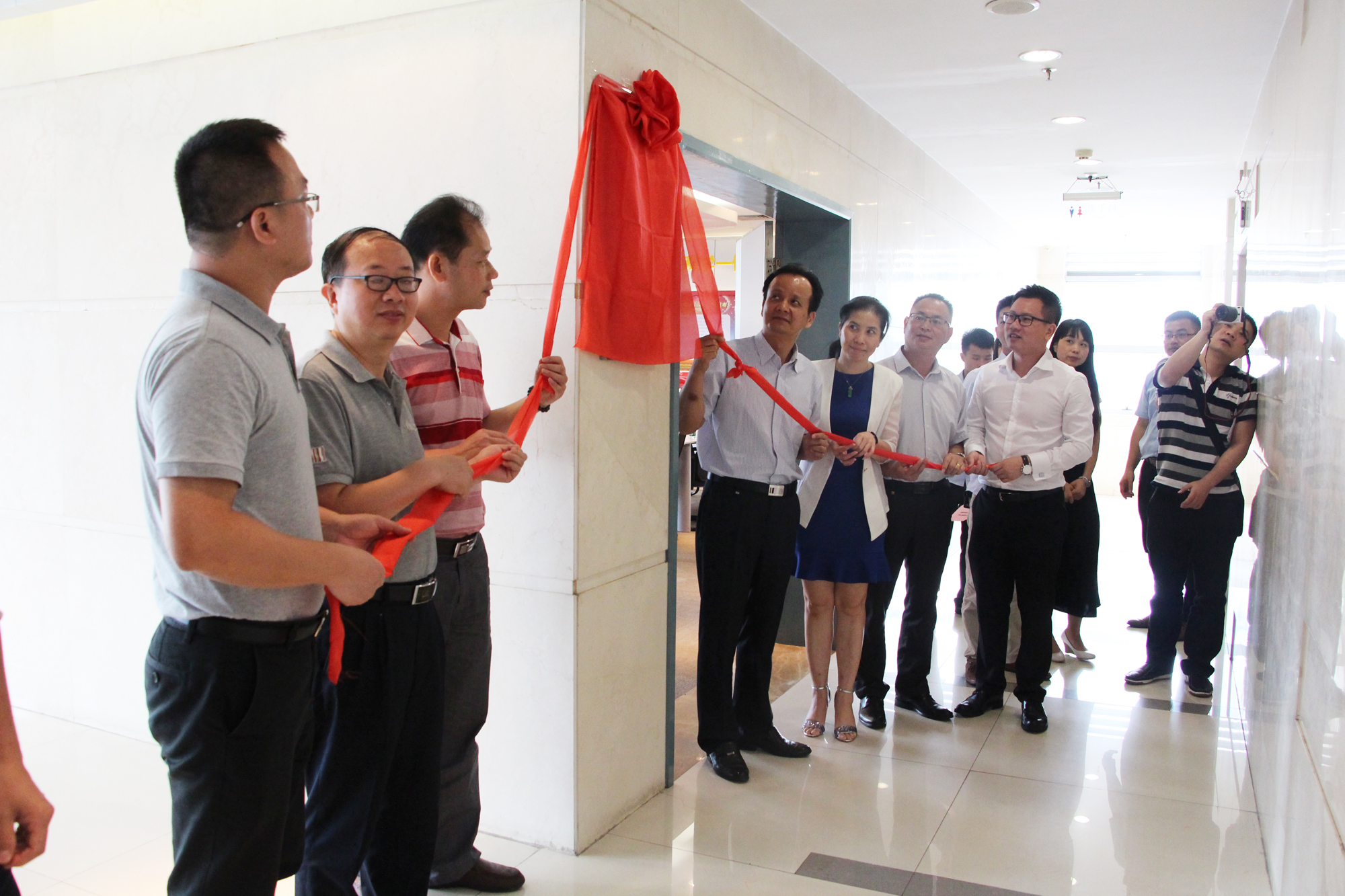 在全體黨員的見證下,黃主任與集團(tuán)黨委領(lǐng)導(dǎo)共同為黨建活動(dòng)室揭牌并合影留念。