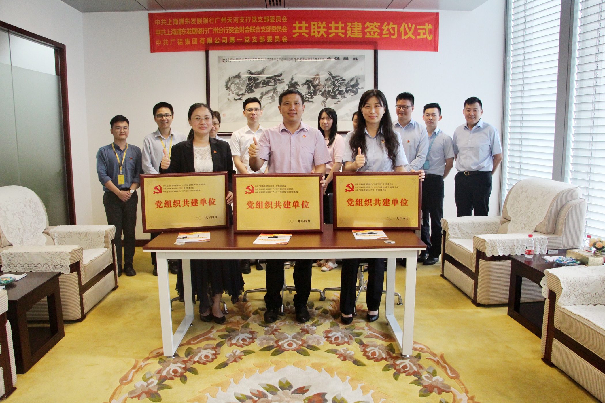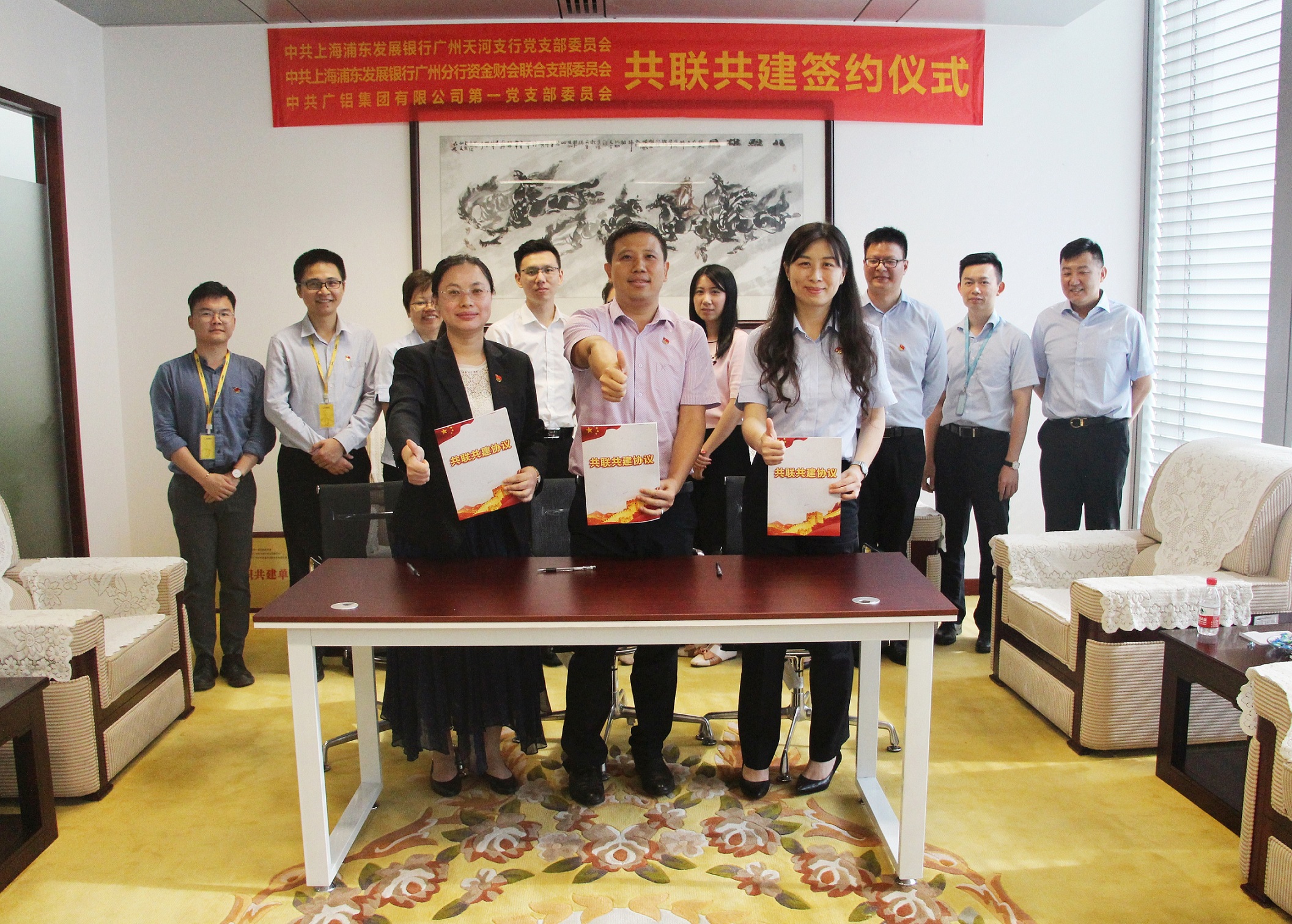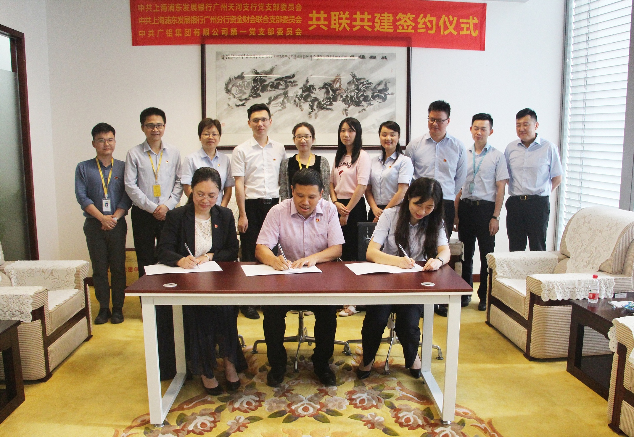 6月26日,中共廣鋁集團(tuán)有限公司黨委與上海浦發(fā)銀行廣州天河支行黨委、上海浦發(fā)銀行廣州分行資金財(cái)會(huì)聯(lián)合支部委員會(huì)共聯(lián)共建簽約儀式在廣鋁集團(tuán)舉行,廣鋁集團(tuán)黨委書記夏明榮和浦發(fā)銀行廣州天河支行行長支部書記陳慧敏、廣州分行資金財(cái)務(wù)部總經(jīng)理聯(lián)合支部書記張琦等雙方黨員代表見證了簽約儀式。