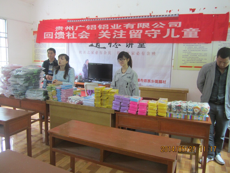 上午9:30時,滿載慰問品的車隊從公司出發,并用半小時左右的時間到達目的地——隴腳村。隴腳村位于貴陽市東北部烏當區新堡布依族鄉境內,地處山區,經濟落后,交通閉塞。在當地村委會的積極配合下,慰問活動進展井然有序。到達目的地后,我們首先向各位村民簡要介紹了貴州廣鋁鋁業有限公司以及此行的目的,隨后為留守兒童逐一派發了書包、文具等學習用品。看到小朋友們臉上天真無邪的笑容,我們的心中充滿了喜悅和感動。