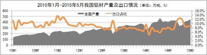鋁材業(yè)務(wù)平穩(wěn)增長。統(tǒng)計數(shù)據(jù)顯示,5月份國內(nèi)鋁材產(chǎn)量456萬噸,環(huán)比增長6.8%;鋁材出口41萬噸,環(huán)比增長7.9%,占鋁材總產(chǎn)量的9%,占比環(huán)比略有上升。出口份額的增長即得益于國際市場經(jīng)濟的復(fù)蘇預(yù)期,得益于財政部取消部分鋁產(chǎn)品15%的關(guān)稅政策。取消關(guān)稅的部分鋁材包括:非合金鋁條、桿;截面周長≥210mm的鋁合金制條、桿;截面周長<210mm的鋁合金條、桿。