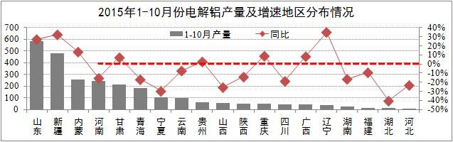 發(fā)稿時間:2015-12-09市場供給方面:產(chǎn)能方面,10月全國電解鋁建成產(chǎn)能約3800萬噸,運行產(chǎn)能3086萬噸,開工率為81.3%;產(chǎn)量方面,10月電解鋁產(chǎn)量259萬噸,同比增長9.8%,累計同比增長4.8%,其中:山東、新疆、內(nèi)蒙、河南等省份全國產(chǎn)量占比65%。截至11月18日,電解鋁合計減產(chǎn)389萬噸,占國內(nèi)總產(chǎn)能的10.3%,其影響效果將于2016年第二季度得到體現(xiàn)。