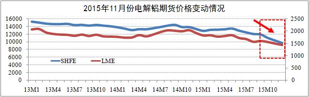 期貨市場方面:截至11月24日,滬鋁三月結(jié)算跌至9670元,自跌破萬元大關(guān)以來,滬鋁主力合約日均漲跌幅為1.4%-2.1%;LME鋁三月結(jié)算跌至1446美元,其跌幅自今年8月以來開始低于滬鋁跌幅。研究認為,滬鋁三月與LME鋁三月結(jié)算價將逐步筑底于9600元關(guān)口(Min.值),期鋁價格將迎來較大的反彈空間。