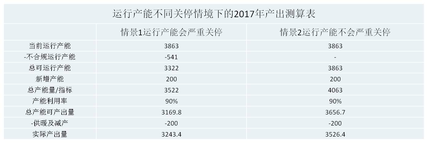 分析認(rèn)為:通過嚴(yán)控新產(chǎn)能與環(huán)保政策驅(qū)動,結(jié)合目前產(chǎn)量2017年我國實際電解鋁產(chǎn)量在3243.4-3526.4萬噸,因此電解鋁供給缺口 [170,-110]萬噸。