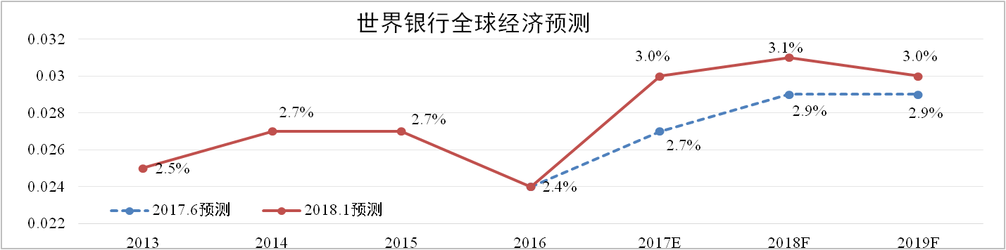 2018年1月9日世界銀行發(fā)布《2018年全球經(jīng)濟展望》報告,預(yù)測隨著投資、制造業(yè)和貿(mào)易的持續(xù)復(fù)蘇,2018年全球經(jīng)濟將加快至3.1%。但在勞動力和資本得到充分應(yīng)用及各國央行逐步取消寬松貨幣的情況下,潛在增長將會放緩,2019年經(jīng)濟增速將回落至3.0%。