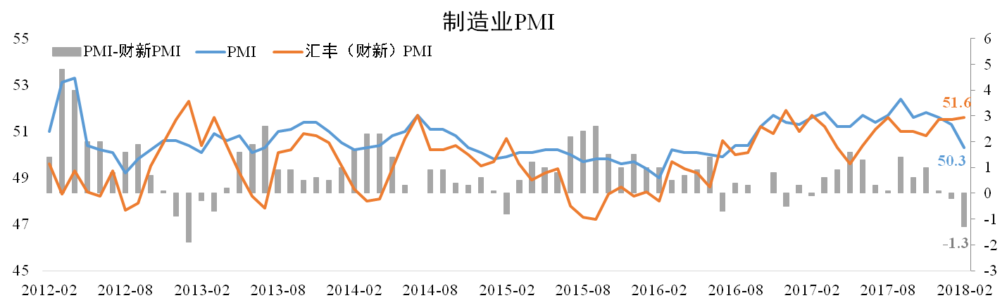 分析認(rèn)為:官方制造業(yè)PMI雖仍處于景氣區(qū)間但回落幅度明顯大于季節(jié)性,反映了經(jīng)濟(jì)下行壓力,可能與金融收緊有關(guān)。3月份春節(jié)、限產(chǎn)等短期擾動(dòng)消退將導(dǎo)致PMI上行,但回暖幅度對(duì)2018年經(jīng)濟(jì)走向起到重要指示作用。