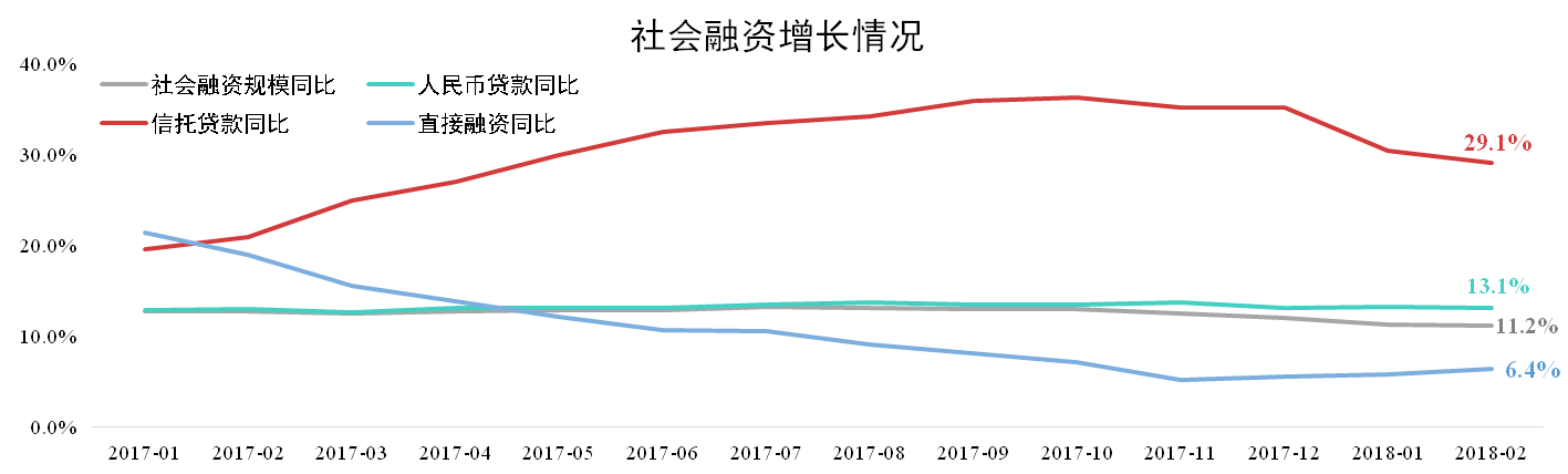 社會(huì)融資規(guī)模有所放緩。據(jù)人民銀行數(shù)據(jù),2月份社會(huì)總?cè)谫Y規(guī)模同比增長(zhǎng)11.2%,與上月持平。合并1-2月數(shù)據(jù)剔除春節(jié)因素影響較去年多增5407億元,表明實(shí)際信貸需求不弱。