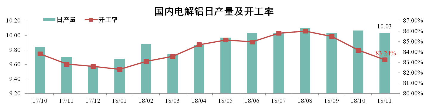 分析認(rèn)為:11月鋁價(jià)市場(chǎng)低迷,高成本企業(yè)減產(chǎn)居多,加之采暖季影響,電解鋁產(chǎn)量下降。鋁價(jià)的大幅下跌是減產(chǎn)的根本原因,12月電解鋁下游需求或繼續(xù)疲軟,預(yù)計(jì)產(chǎn)量仍有下行趨勢(shì)。