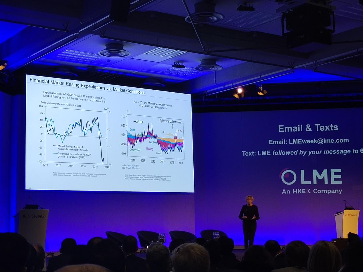 發(fā)稿時(shí)間:2019-10-312019年10月28日,一年一度的LME WEEK在英國倫敦正式召開。上海金屬網(wǎng)對本次LME WEEK進(jìn)行全程報(bào)道,本文將為您帶來LME金屬研討會(huì)上的花旗銀行全球首席經(jīng)濟(jì)學(xué)家Catherine Mann關(guān)于“全球經(jīng)濟(jì)展望”的演講: