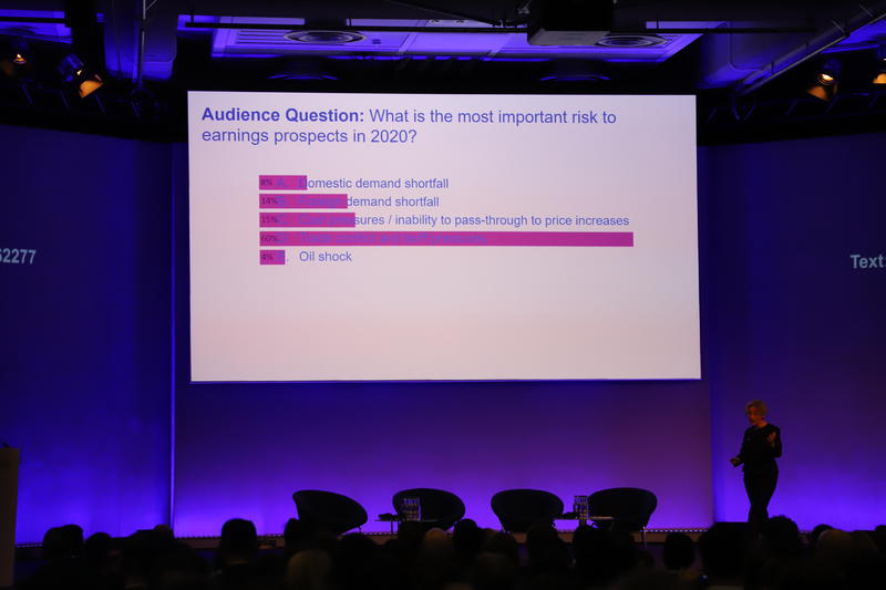 那么,影響2020年經(jīng)濟(jì)增長的風(fēng)險(xiǎn)因素中,哪個(gè)最重要呢?60%觀眾選擇了貿(mào)易紛爭和關(guān)稅壓力,其次是成本壓力/價(jià)格上漲(15%)、國外需求短缺(14%)、國內(nèi)需求短缺(8%),最后是石油市場不穩(wěn)定(4%)。我同意你們的選擇。但也有一些很有意思的值得討論的地方。