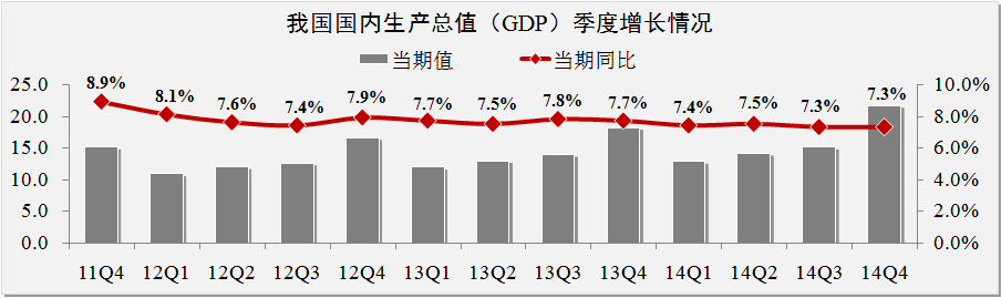 發(fā)稿時間:2015-01-232014年度我國國內(nèi)生產(chǎn)總值為63.6萬億元,同比增長7.4%,較2013年下滑0.4個百分點。其中,第一產(chǎn)業(yè)同比增長4.1%,第二產(chǎn)業(yè)同比增長7.3%,第三產(chǎn)業(yè)同比增長8.1%。IMF預(yù)計2015-2016年我國經(jīng)濟增長速度將繼續(xù)維持放緩趨勢,年度增長率分別為6.8%和6.3%。研究指出,現(xiàn)階段國內(nèi)當局更加注重化解短期信貸以及投資擴張帶來的資產(chǎn)負債表脆弱性風險。