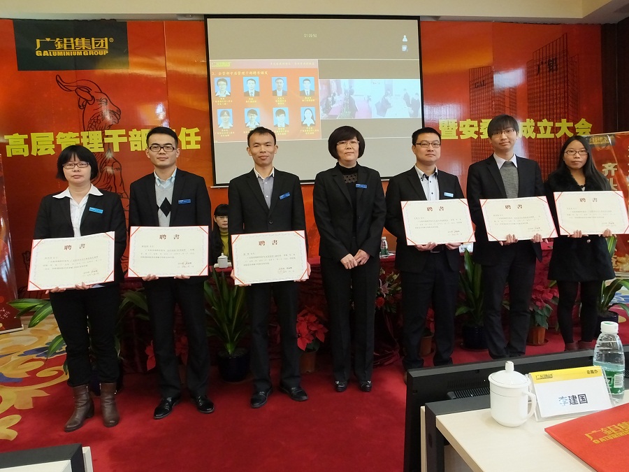 會(huì)議上,集團(tuán)公司高層領(lǐng)導(dǎo)對(duì)集團(tuán)本部15名中層管理干部及主持部門工作的助理級(jí)管理干部頒發(fā)了2015年度任職資格聘任證書。首先,由集團(tuán)董事、常務(wù)副總裁黃丹華為總裁辦中層管理干部頒發(fā)了聘書;隨后,結(jié)算部總經(jīng)理助理李漢香為結(jié)算部中層管理干部頒發(fā)了聘書;最后,董事會(huì)秘書長(zhǎng)、副總裁兼企管部總經(jīng)理曾麗娜為企管部中層管理干部及主持部門工作的助理級(jí)管理干部頒發(fā)了聘書。貴州鋁業(yè)公司、貴州礦業(yè)公司董事長(zhǎng)葉永標(biāo)代表為貴州鋁業(yè)公司財(cái)務(wù)處及人資處共2名管理干部頒發(fā)了聘書。