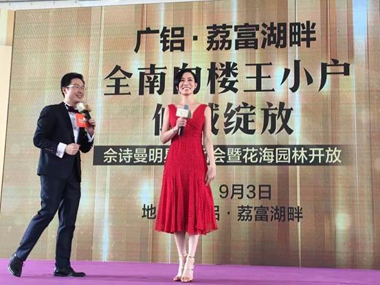 臺上的她優(yōu)雅活潑,不時的逗樂引得臺下觀眾哈哈大笑,加之在互動環(huán)節(jié)中,言談舉止間極其愛護(hù)自己的粉絲,現(xiàn)場不少觀眾也表示立即被圈粉。歡聲笑語間,她依然不忘稱贊廣鋁·荔富湖畔靚麗舒適的社區(qū)環(huán)境,毫不遮掩自己對其新品西式裝修風(fēng)格的偏愛。與此同時,營銷中心依然滿座,銷控聲響不停,場內(nèi)場外氛圍進(jìn)入白熱化階段。最終,活動圓滿落幕,廣鋁集團(tuán)各領(lǐng)導(dǎo)與佘詩曼共同為全新板房開放剪彩并合影留念。