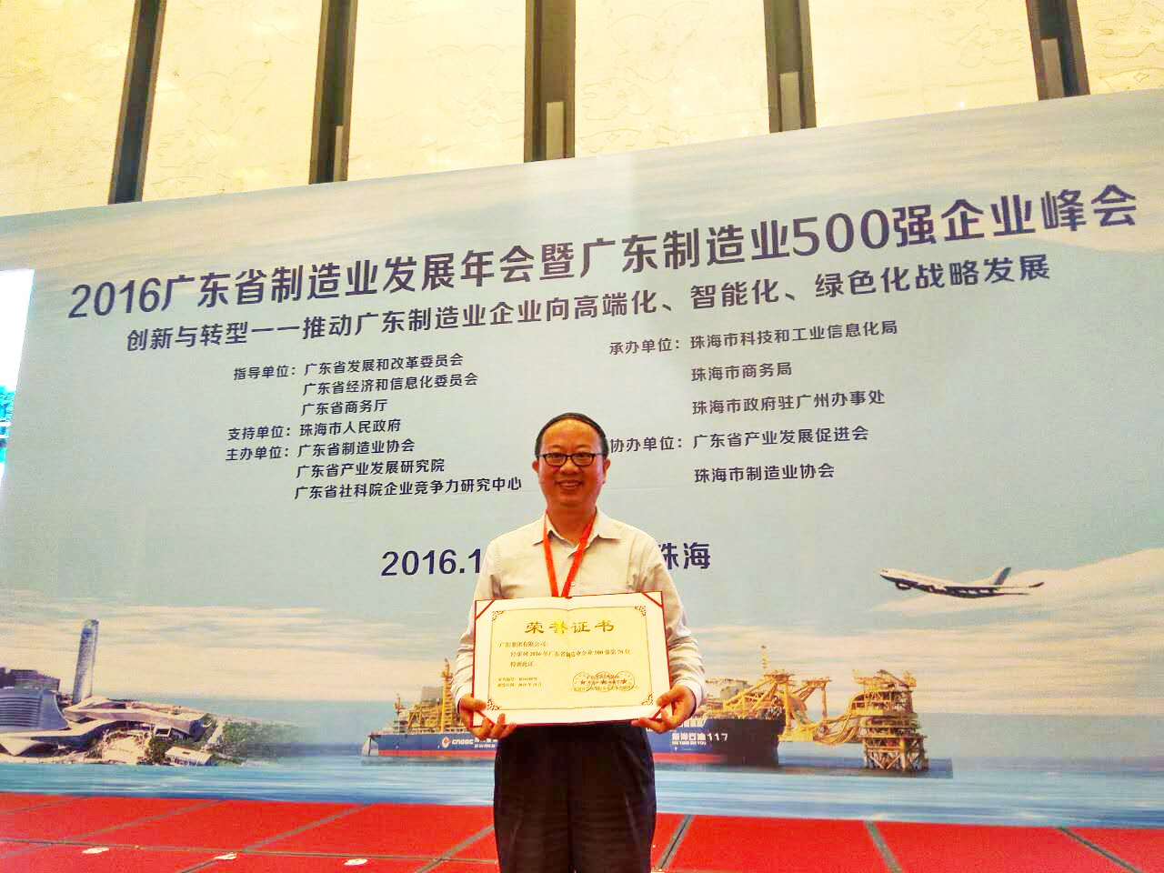 發(fā)稿時間:2016-10-1310月13日,2016年廣東省制造業(yè)發(fā)展年會暨廣東省制造業(yè)500強企業(yè)峰會在珠海市國際會展中心圓滿落幕。廣鋁集團喜獲2016年廣東省制造業(yè)500強企業(yè)第70名,生產(chǎn)總經(jīng)理劉煌萍代表公司參加了此次峰會并領(lǐng)取表彰證書。