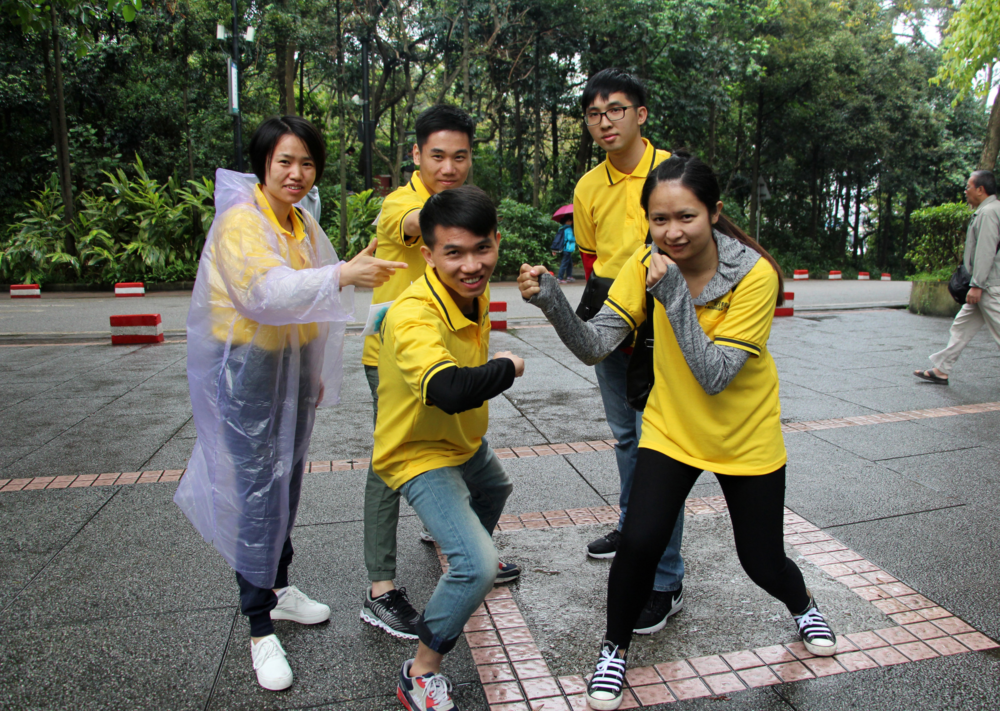 9點(diǎn)整,白云山腳下出現(xiàn)了一道亮黃色的特別風(fēng)景,雖然天突降大雨,但仍澆不滅大家的熱情。