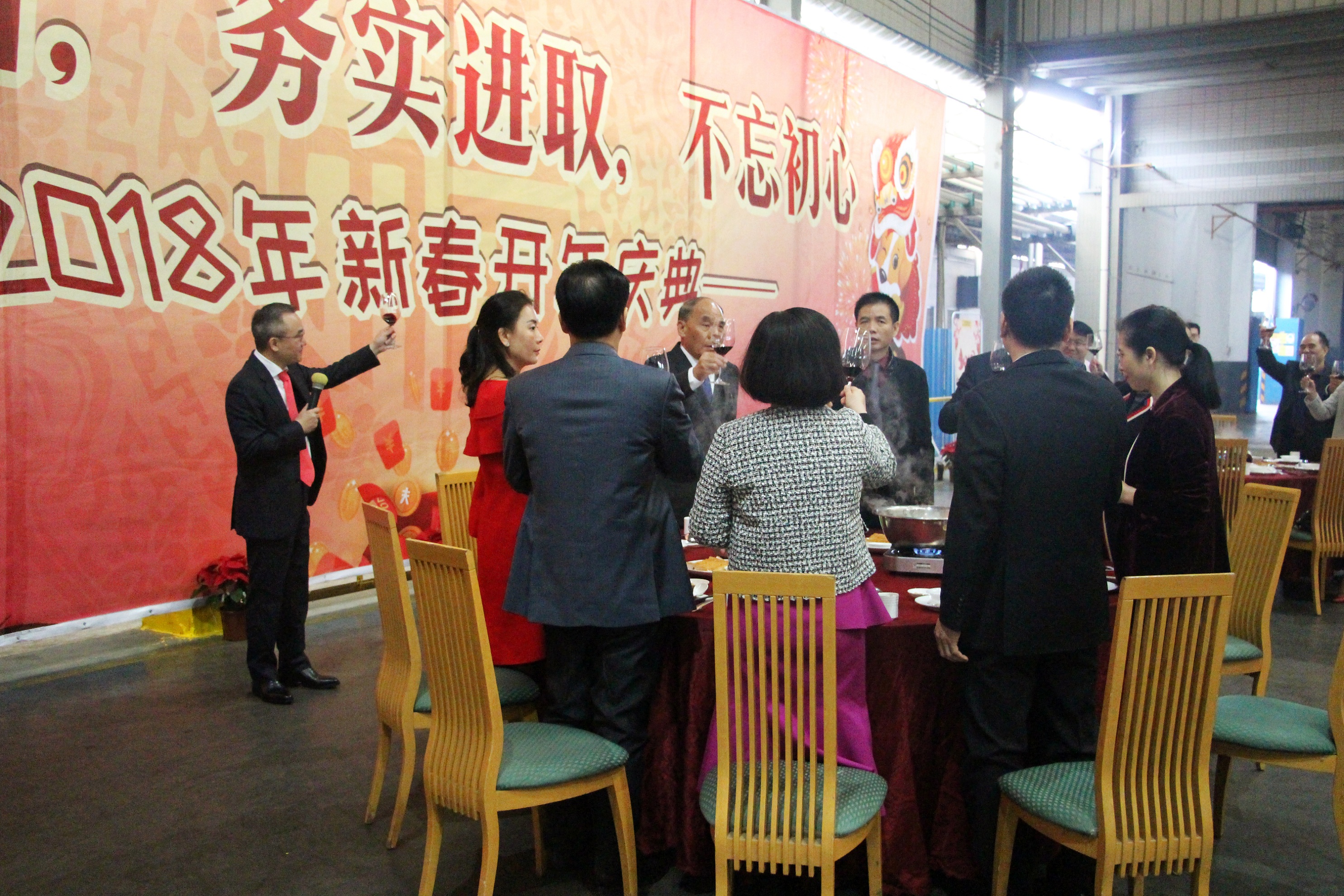 葉鵬智董事長(zhǎng)向全體員工祝酒
