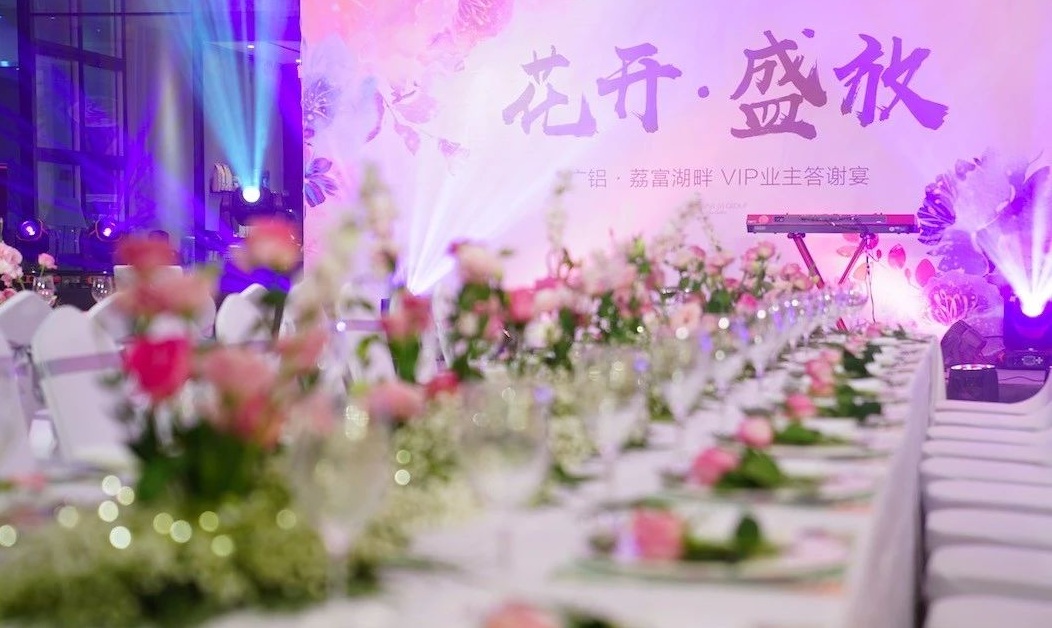 家居大變身活動(dòng)啟動(dòng)儀式圓滿結(jié)束后,荔富湖畔售樓部迅速變身媲美網(wǎng)紅拍照打卡地的大花園,“花開·盛放”VIP業(yè)主答謝宴隆重開席。