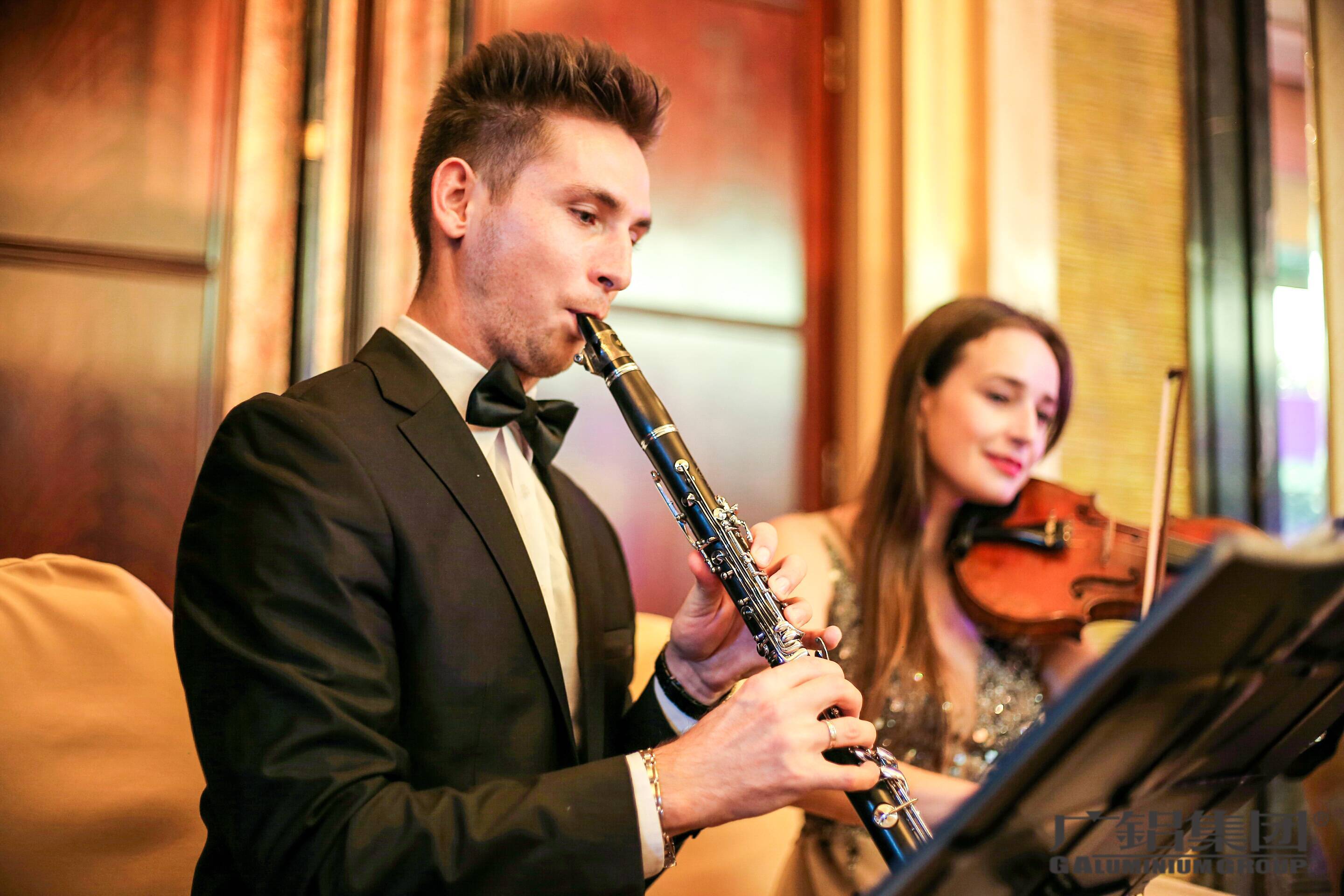 優(yōu)雅動(dòng)聽(tīng)的古典音樂(lè)演奏,搭配柔和的燈光、精致的美食、清醇的香檳,營(yíng)造了輕松愉快的氛圍。