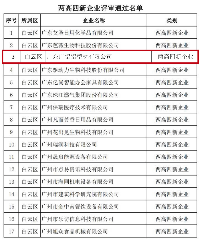 熱烈慶祝!廣鋁入庫廣州市工信委“三個一批”企業(yè)