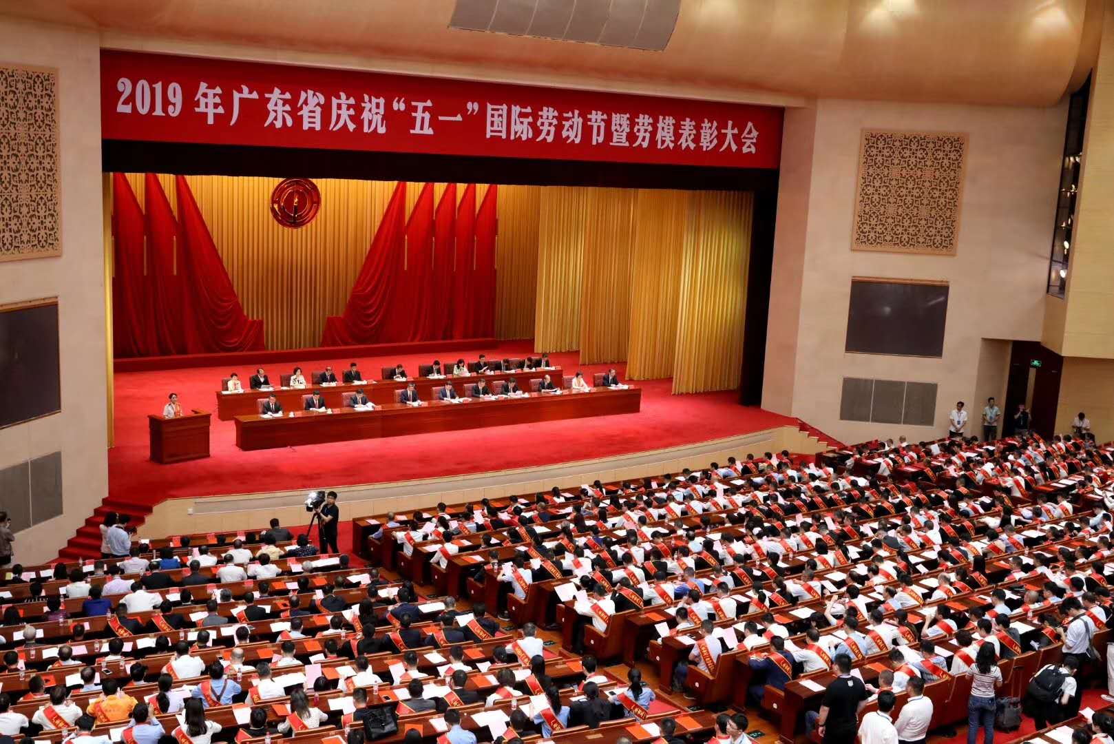 4月29日上午,2019年廣東省慶祝“五一”國際勞動(dòng)節(jié)暨勞模表彰大會(huì)在廣州召開,會(huì)上向2019年獲表彰的五一勞動(dòng)獎(jiǎng)狀、獎(jiǎng)?wù)碌膯挝缓蛡€(gè)人代表頒獎(jiǎng)。
