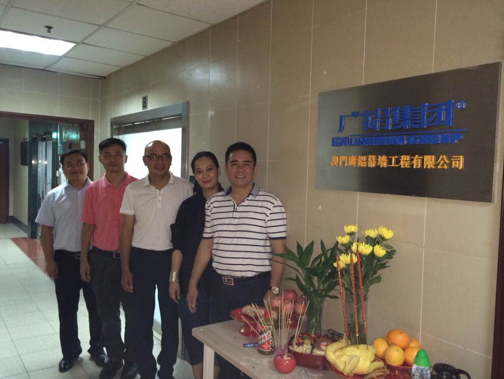 2014年8月14日上午11:00時(shí),澳門廣鋁幕墻工程有限公司(廣鋁幕墻澳門分公司)開業(yè)盛典在澳門舉行,廣東廣鋁幕墻有限公司總經(jīng)理吳國(guó)權(quán)、總工程師胡欣出席了本次開業(yè)盛典的剪彩儀式。澳門廣鋁幕墻公司位于澳門宋玉生廣場(chǎng)180號(hào)東南亞商業(yè)中心15樓C座。澳門廣鋁幕墻公司的成立標(biāo)志著廣東廣鋁幕墻公司正式吹響了進(jìn)駐澳門市場(chǎng)的號(hào)角。