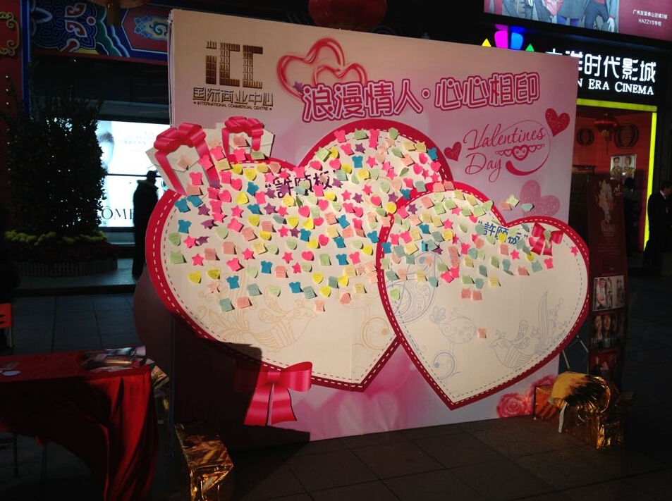 今年的元宵節(jié)與西方情人節(jié)為同一天,而下一個雙節(jié)同慶則是在19年后了。因此,我們特別設(shè)立了一個雙面的許愿心型墻,并在現(xiàn)場提供若干許愿紙條,大量的情侶、學(xué)生和職業(yè)人士都把自己的新年愿望寫在許愿紙上,粘貼到許愿墻上,祈求新年心想事成、祈求有情人終成眷屬、祈求學(xué)業(yè)進(jìn)步、祈求更上一層樓!