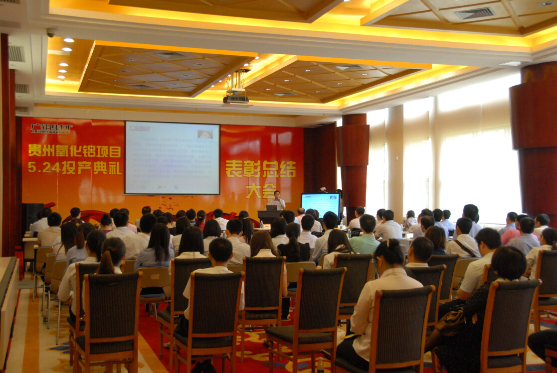 2012年6月9日,廣鋁集團(tuán)在江高行政辦公樓二樓多功能廳舉行了貴州氧化鋁項目5.24投產(chǎn)典禮表彰總結(jié)大會。集團(tuán)總部及各分公司中高層管理干部、投產(chǎn)典禮所有廣鋁工作人員出席了會議,貴州公司也通過視頻連線參加了本次大會。集團(tuán)王常務(wù)副總裁在會上做了重要講話,大會最后對貴州5.24投產(chǎn)典禮中表現(xiàn)突出的一批工作人員進(jìn)行了表彰。